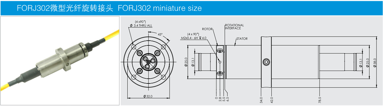 FORJ302光纖旋轉(zhuǎn)接頭用于單?;蚨嗄O到y(tǒng)的光電旋轉(zhuǎn)連接;完全的雙向旋轉(zhuǎn);與現(xiàn)有的電氣滑環(huán)設(shè)計相融合;全封閉結(jié)構(gòu);能為客戶量身定制所需要的光纖滑環(huán)