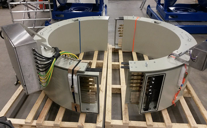 另一款我們又稱分體式盤式滑環(huán),分體式盤式滑環(huán)用于空間受限的應(yīng)用場合中,滑環(huán)不能安裝在單個部件的結(jié)構(gòu)上,適用于在現(xiàn)有的結(jié)構(gòu)之上添加滑環(huán),改善電纜或控制信號的傳輸方式,分體式盤式滑環(huán)可用于大型的卷筒,電纜制造機,大型電機和不同的測試系統(tǒng)。
